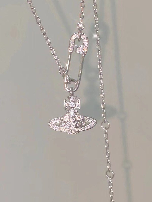 Rhinestone Safety Pin Cosmos Necklace