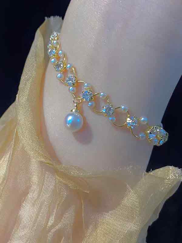 Diamond Pearl Decor Pendant Bracelet
