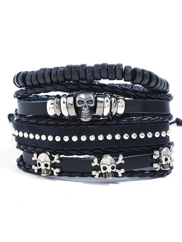 4pcs Skull Pu Leather Bracelet Set