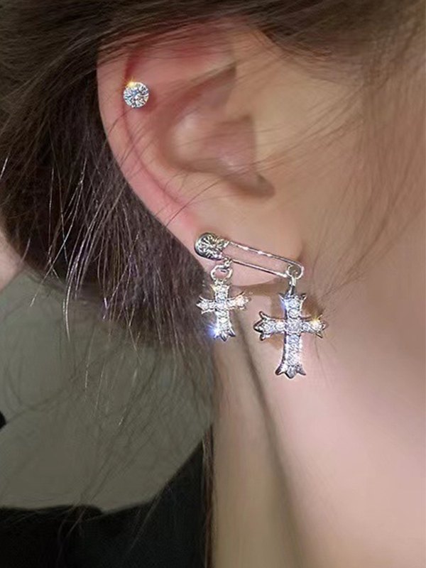 Rhinestone Cross Decor Earring