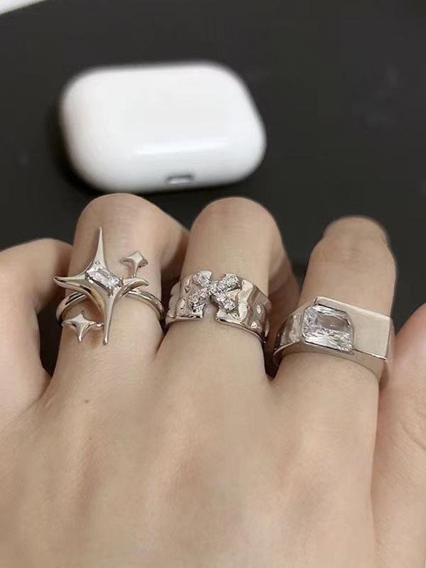 3pcs Glittering Embedded Diamond Cuff Ring Set