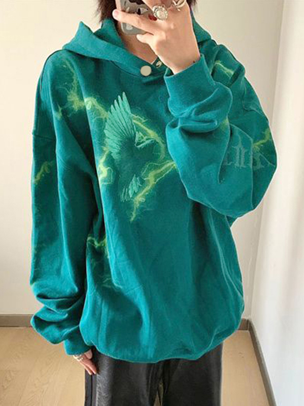 Men’s Contrast Color Pigeon Print Oversized Hoodie
