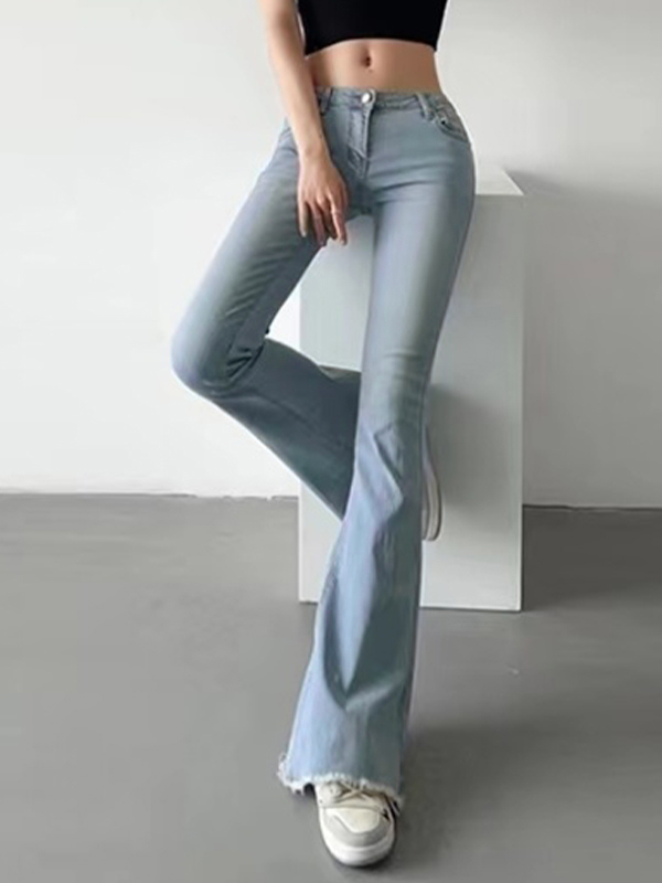 Washed Low Waist Stretchy Mopping Flare Jeans