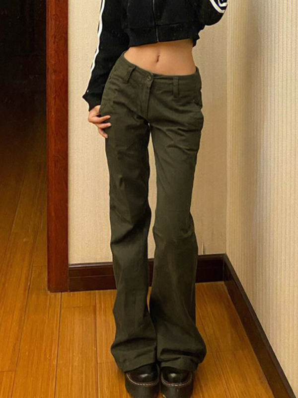Vintage Green Low Waist Flare Jeans