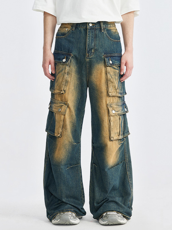 American Retro Multi-Pocket Workwear Loose Jeans