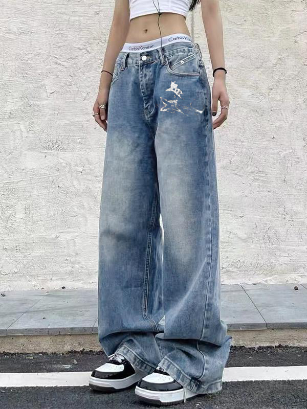 American Retro Wide Leg Mop Loose Jeans