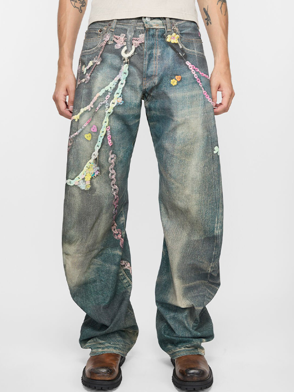 Men’s Vintage Wash Raw Trim Loose Jeans