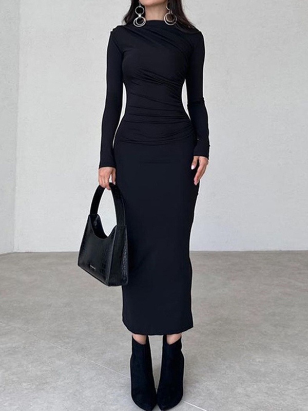 Solid Ruched Long Sleeve Maxi Dress