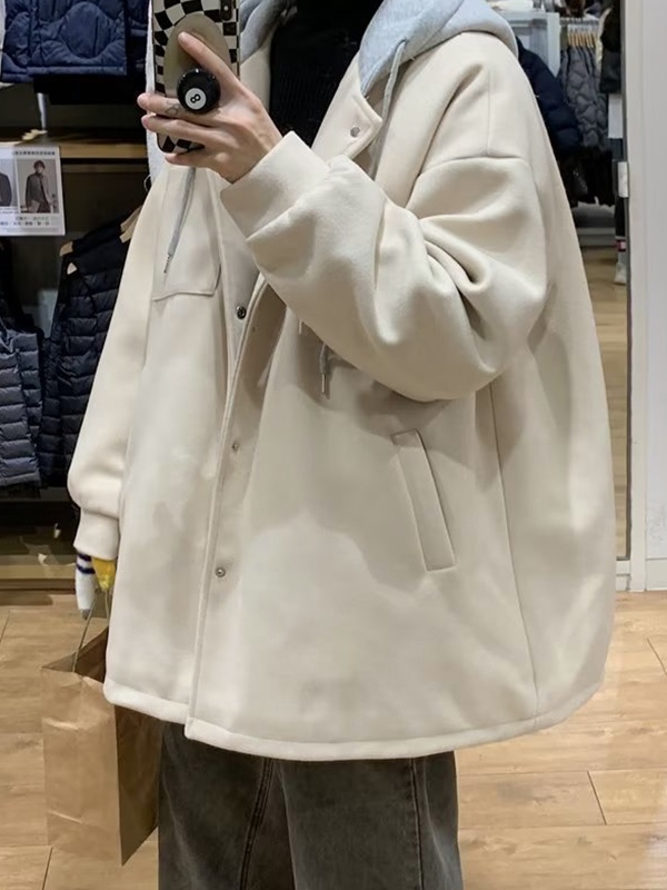 Men’s Patchwork Wool Blend Hooded Jacket