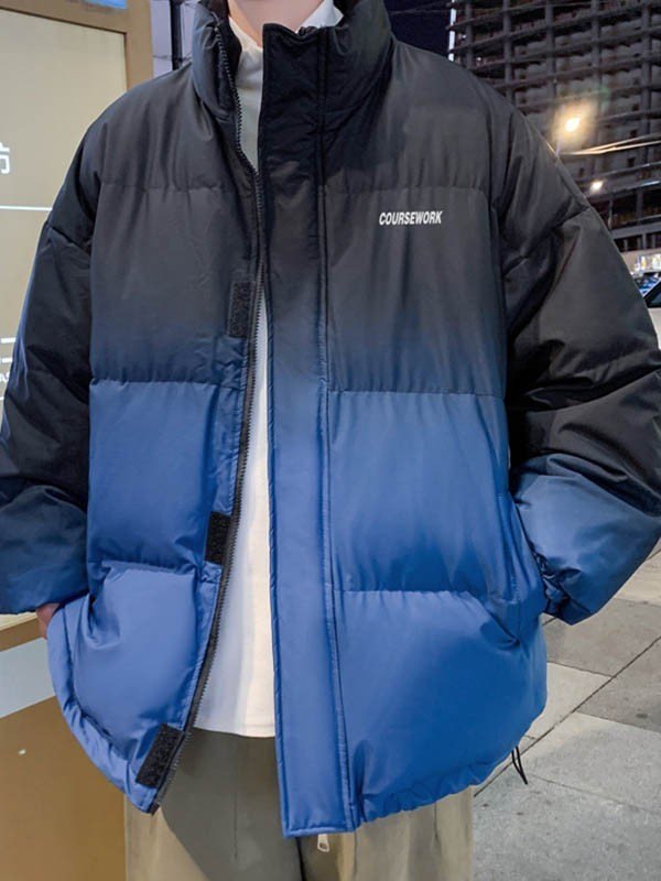 Men’s Gradient Color Block Zip Up Padded Jacket