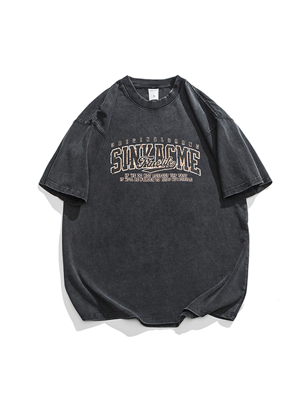 Men’s Vintage Suede Letter Print Short Sleeve Tee