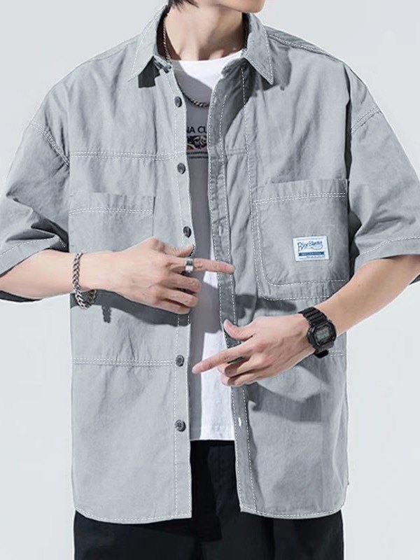 Men’s Patchwork Buttoned Short Sleeve Shirt