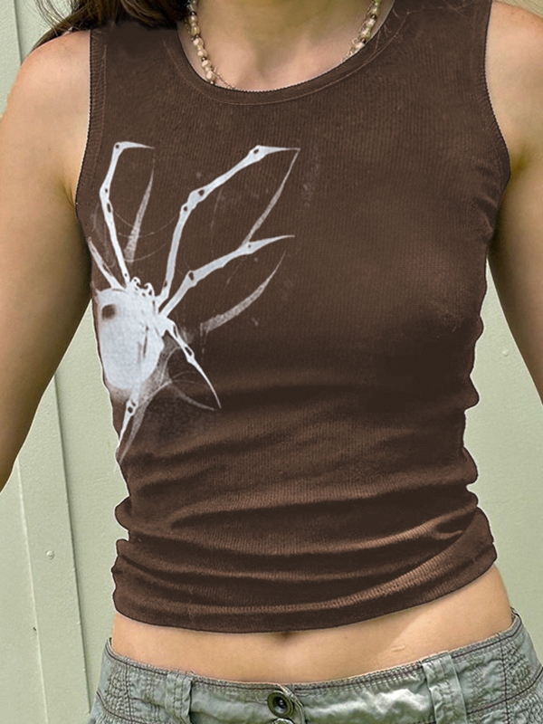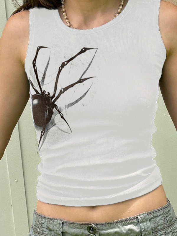 Street Spider Print Ribbed Tank Top