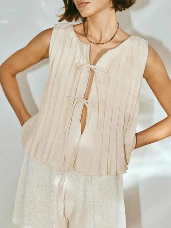 Tie strap cotton and linen vest