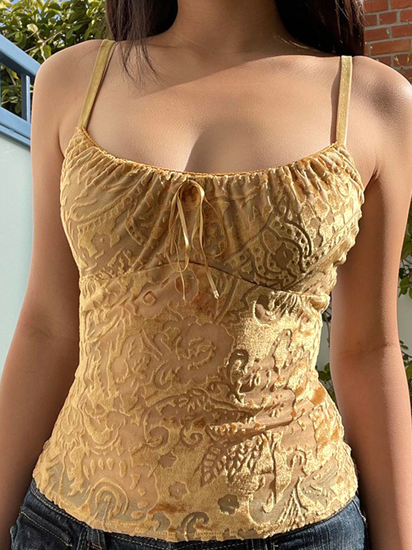 Velvet Floral Jacquard Bow Decor Cami Top