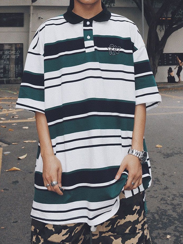 Men’s Contrast Striped Embroidery Short Sleeve Tee