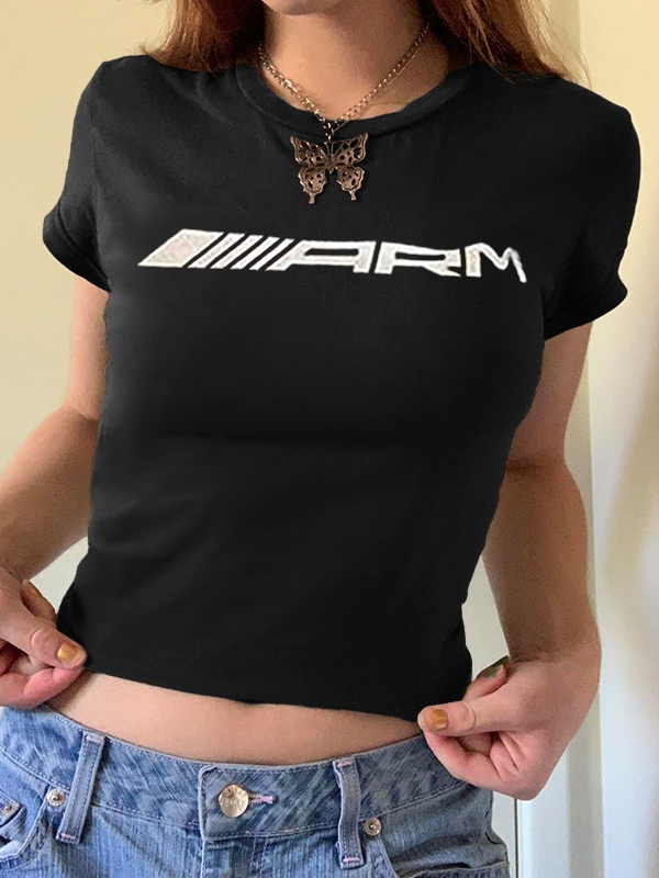 Vintage Brown Letter Print Short Sleeve Tee