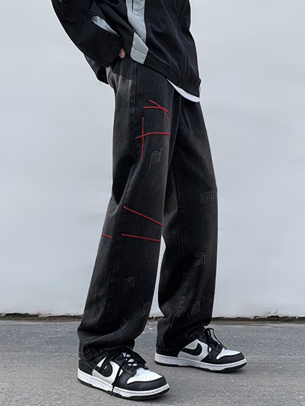 Men’s Stitched Distressed Straight Leg Jeans