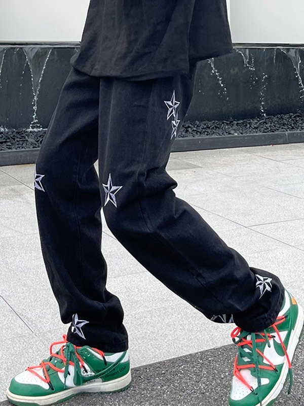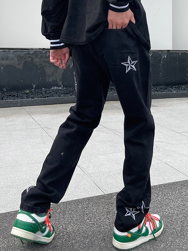Be the first to review “Men’s Embroidered Star Black Loose Jeans”