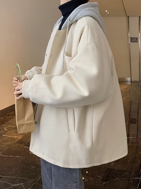 Description: This go-to winter outfit shaped to a relaxed silhouette, it has a cozy hood paneled to the back, features functional pockets at front, and drop shoulders detailing, ended with snap button fasten design.