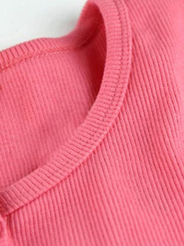 Adjustable Breasted Design: The unique breasted design is adjustable, adding an extra touch ofStyle and functionality to this tee. The ribbed detail also adds a classic texture to the overall design.