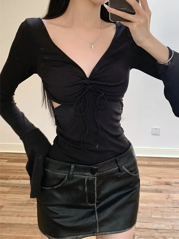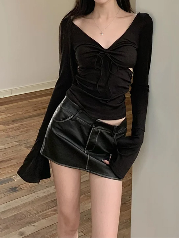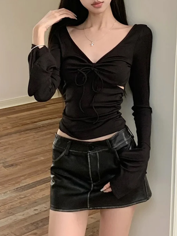 Be the first to review “Solid V Neck Side Cutout Trumpet Sleeve Long Sleeve Knit”