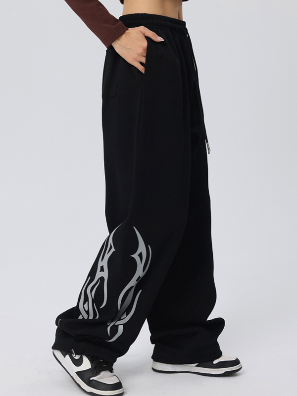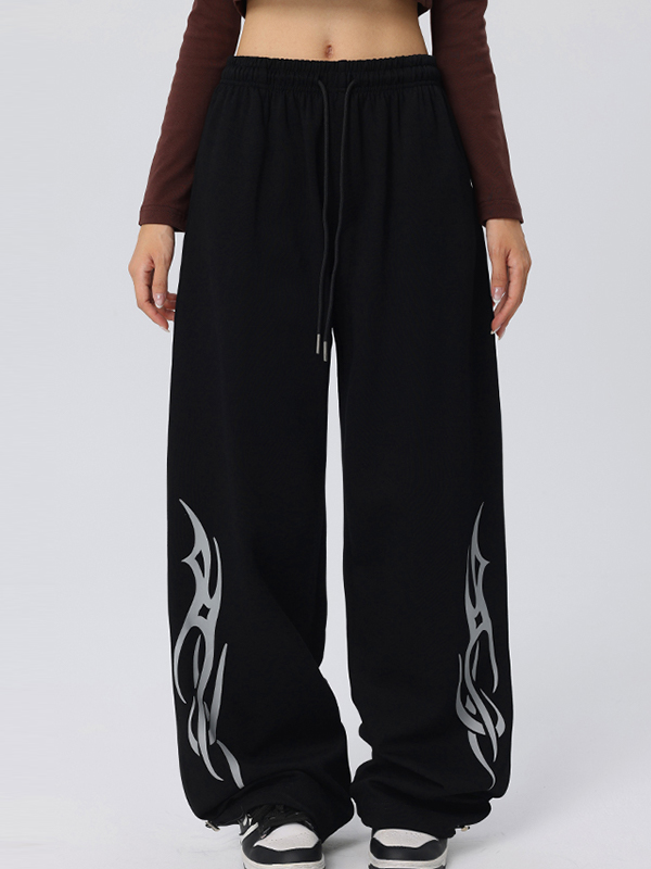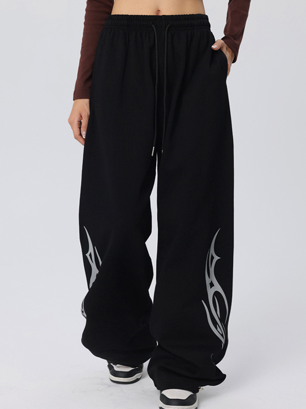 Vintage Wings Print Loose Sweatpants